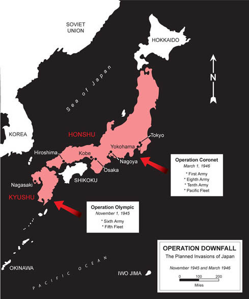 Awalnya Operation Downfall akan dimulai setelah pemboman Hiroshima & Nagasaki untuk menyerbu tanah air jepang utk "Final Battle"